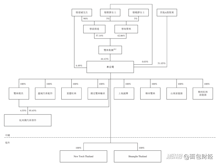 雙林股份股權(quán)結(jié)構(gòu)相對集中,截至招股書披露,控股股東為雙林集團(tuán)及其一致行動人,合計(jì)持有約48.95%股份。