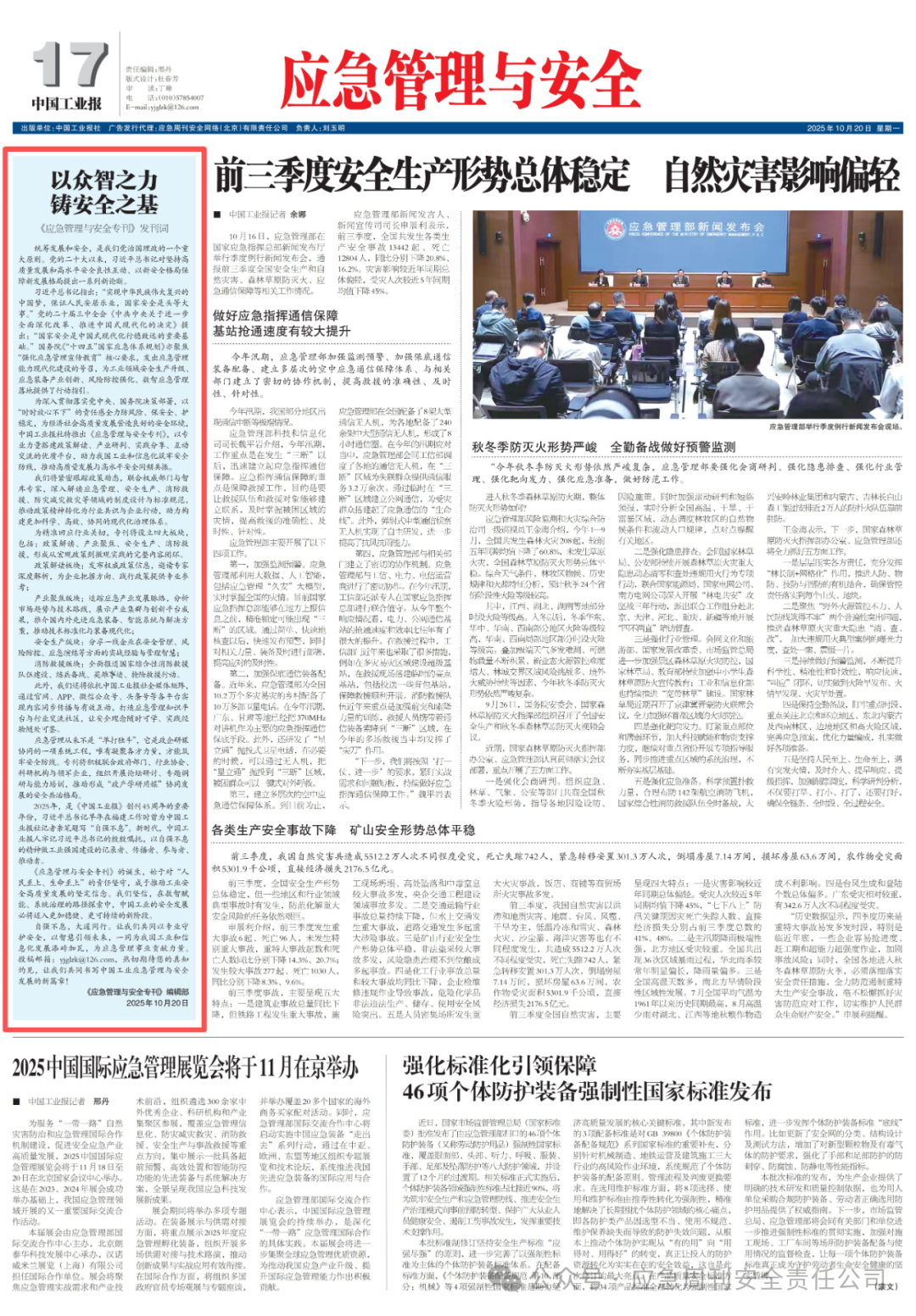應急管理從來不是“單打獨斗”,它是政企研媒協同的一項系統工程,唯有凝聚各方力量,方能筑牢安全防線。專刊將積極聯合政府部門、行業協會、科研機構與領軍企業,組織開展論壇研討、專題調研與能力培訓,推動形成“政產學研用媒”協同發展的安全共治格局。