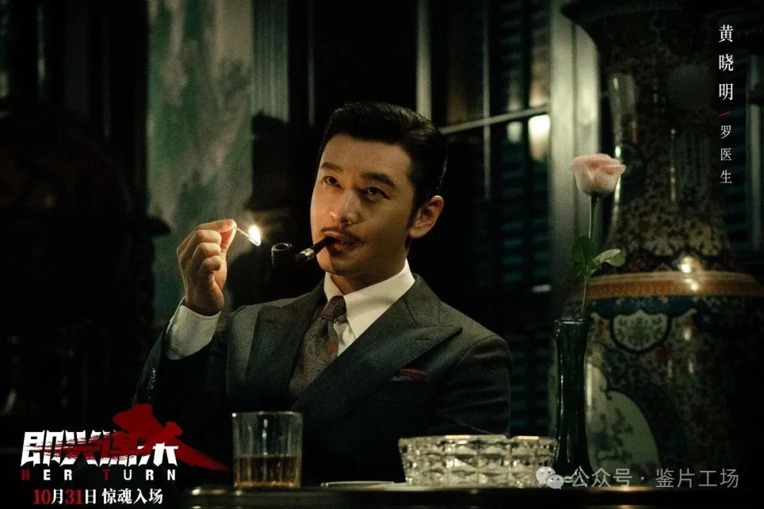 “所有部門逐場戲、逐鏡頭分析怎么落地執行,導演對每一個細節要做的很較真。”攝影指導晁明的這句話,或許道出了《即興謀殺》的品質密碼。程亞楠曾擔任《我和我的家鄉》執行導演,從攝影轉型導演的履歷讓他對視覺語言有著近乎偏執的把控力,何家古堡的場景設計堪稱“心理場域的物化”。哥特式拱頂下,攝影機以45度俯角拍攝長桌晚宴,人物被壓縮成棋盤上的棋子;鄧家佳主演的繼母吳麗云,臥室永遠拉著猩紅色絲絨窗簾,側逆光勾勒出她面部的明暗分割,恰似人格的雙重性;黃曉明塑造的私人醫生羅醫生,儒雅氣質包裹著莫測心思,一個眼神的流轉便完成了從可信到可疑的轉變;而李庚希主演的何思怡的輪椅軌跡,則成為隱形的敘事線索,從最初沿著墻根的局促繞行,到最終直面真相時的中軸線推進,空間調度與人物心理形成絕妙的同構。