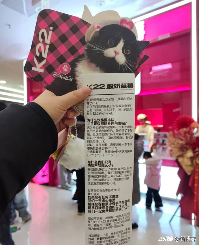 比如K22和茶顏悅色的“小票文學”整體負面評價較多。去年開始,不少網友吐槽“K22小票比10個人吃海底撈都長”,原因在于K22在小票上詳細解釋了“為什么飲品要排隊并且建議您15分鐘內喝完”“為什么我們只有四款產品那么少”,甚至還貼心打上了“預計閱讀時長為52.2秒”的提示,但不少消費者的評價是“廢話連篇”“大可不必”。