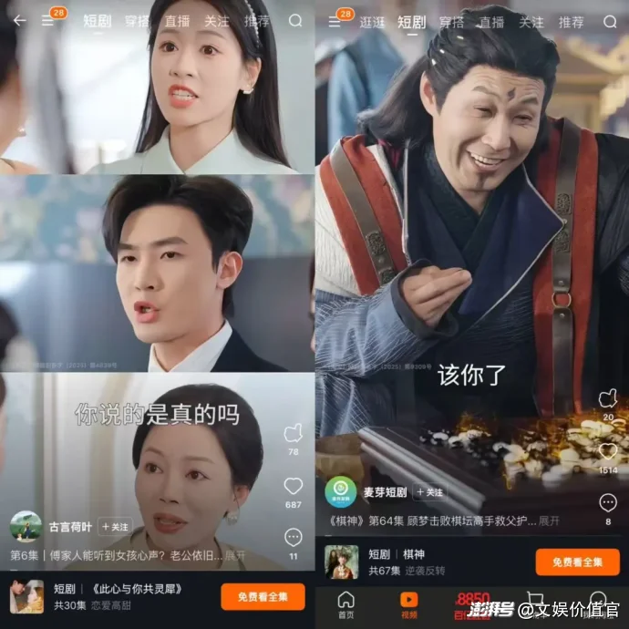 MCN公司創始人杰尼告訴文娛價值官,對比直播間的“理性比價”,短劇通過故事構建與用戶的情感連接。“共情”引發“共購”是短劇帶貨的優勢所在,“用戶因認同角色、沉浸劇情,對角色使用的商品產生天然信任與渴望,從而最終實行消費。”短劇以其強劇情、快節奏、低成本,成為獲取增量用戶和時長的優質內容載體,不少電商和品牌開始嘗試通過短劇進行帶貨。