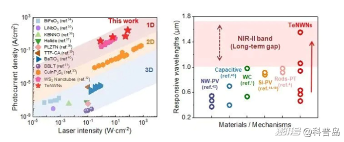 TeNWNs光電流密度和光感重建范圍(圖片來源:復旦大學公眾號)