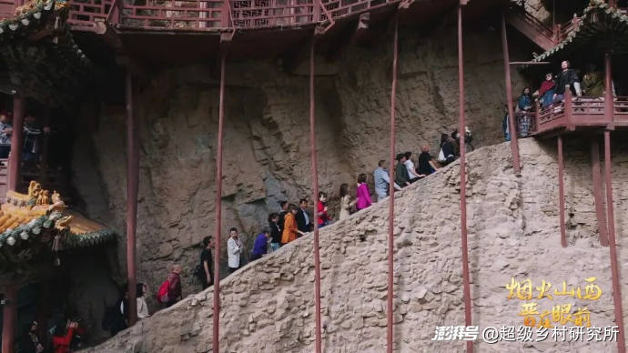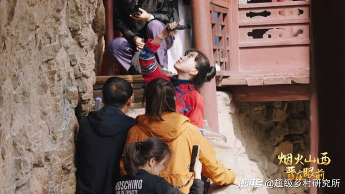 當終于走完這趟驚險之旅,張老師難掩激動:“走上來了,第三次終于走到走高峰了,體驗到它這個險,特別感受到險?!蹦鹿媚飫t欣慰地說:“第一次把我們的懸、奇、巧、俏、峻都體會到了。” 這次攀登,對我而言,也是一次穿越般的體驗。攀懸梯,跨飛棧,穿石窟,鉆天窗,走屋脊,步曲廊,仿佛人在畫中游,時空在此交錯。