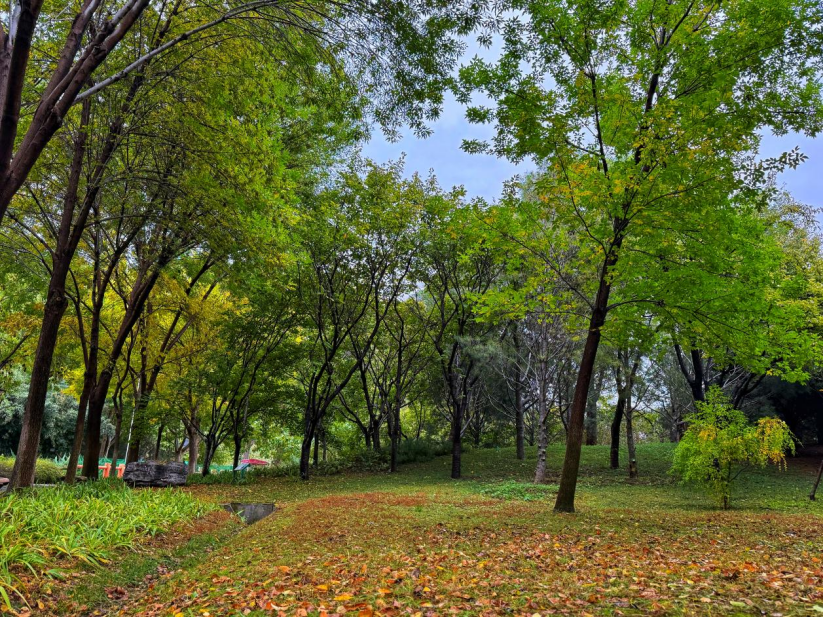 △現在的博大公園,正是一片綠意和深秋交融的美景。孫佳蕊/攝