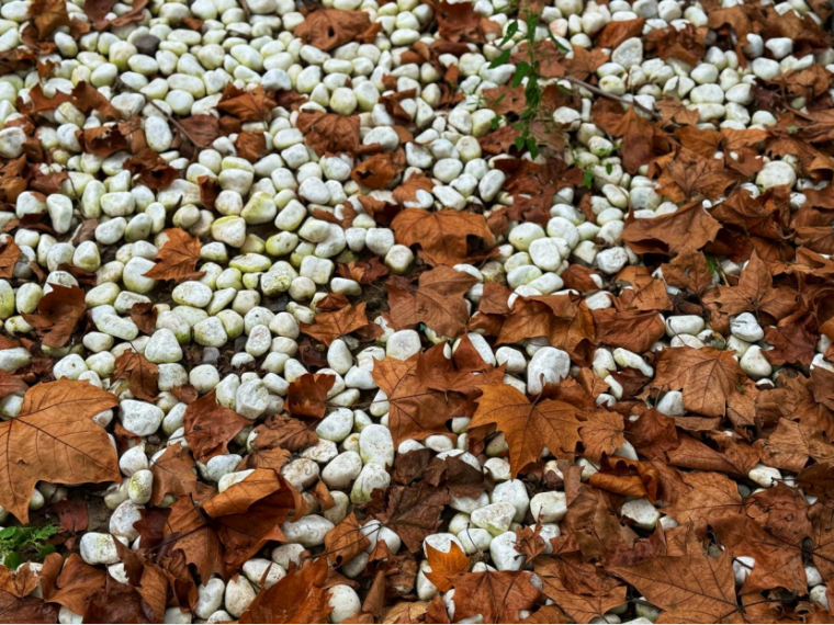 △低頭看,落葉和石頭都有美感。孫佳蕊/攝