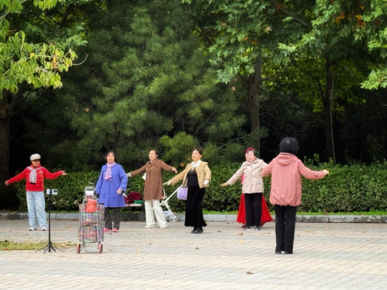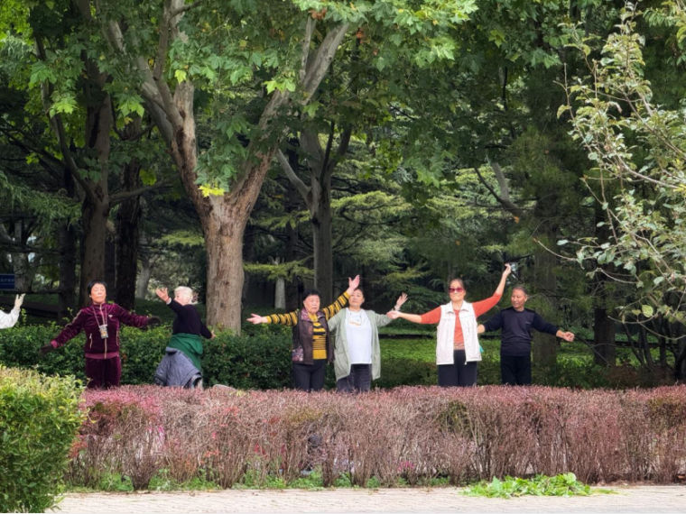 老人們在公園的晨光與綠意里鍛煉,把平常的晨練過成了亦莊秋日里最有生活氣的風景。