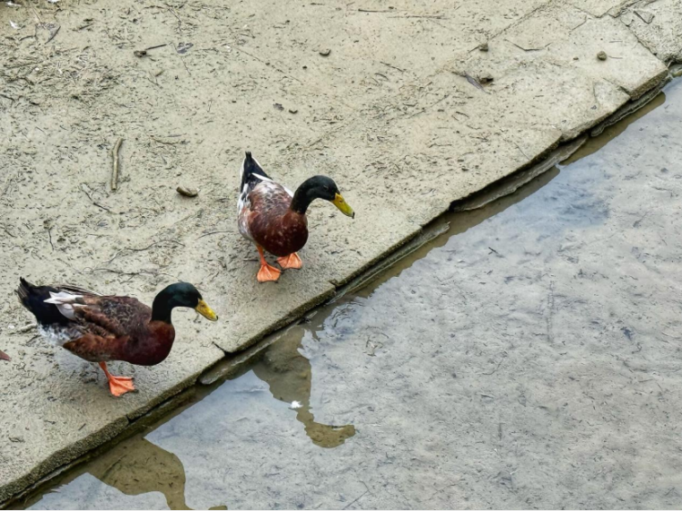 小鴨子們逗笑了小朋友,歡樂的笑聲給這霜降寒天添了份格外鮮活的熱鬧。