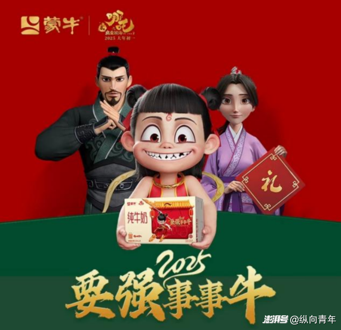 2025年春節(jié)期間,電影《哪吒2》大放異彩,蒙牛第一時(shí)間與《哪吒2》合作,電影上映后短短10天,聯(lián)名款產(chǎn)品就在單一線上渠道,取得了超過(guò)1200萬(wàn)元的成績(jī)。