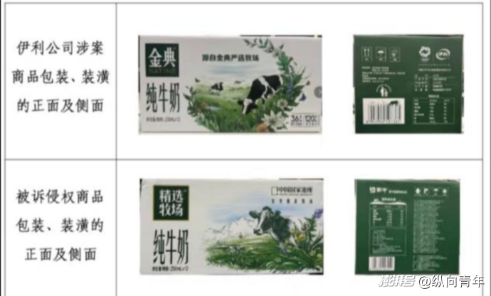 判決書顯示:蒙牛的“精選牧場(chǎng)”純牛奶,因使用與伊利“金典”高度相似的包裝,已經(jīng)構(gòu)成不正當(dāng)競(jìng)爭(zhēng),需立即停止侵權(quán)行為,并向伊利賠償500萬(wàn)元。