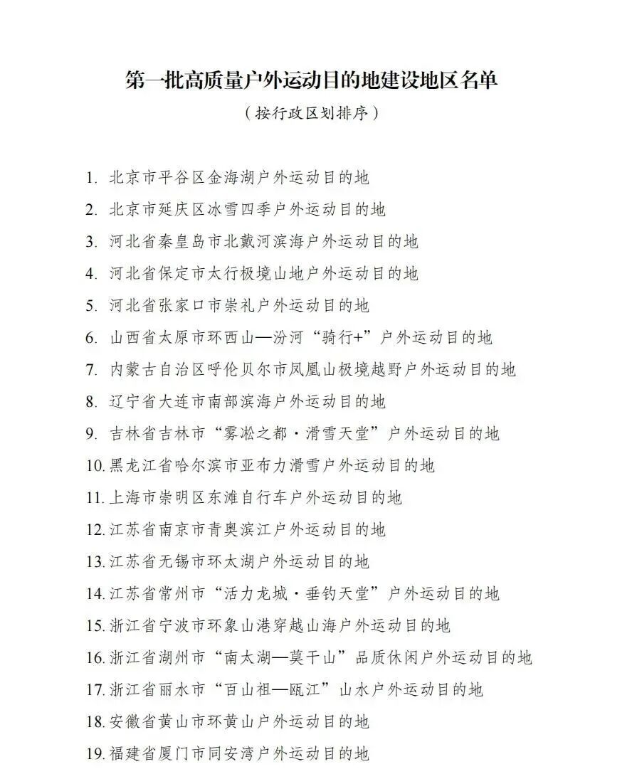 10月24日消息,國家發(fā)展改革委辦公廳等部門發(fā)布通知,擬將“北京市平谷區(qū)金海湖戶外運(yùn)動目的地”等49個目的地納入高質(zhì)量戶外運(yùn)動目的地建設(shè)地區(qū)名單予以重點(diǎn)支持。