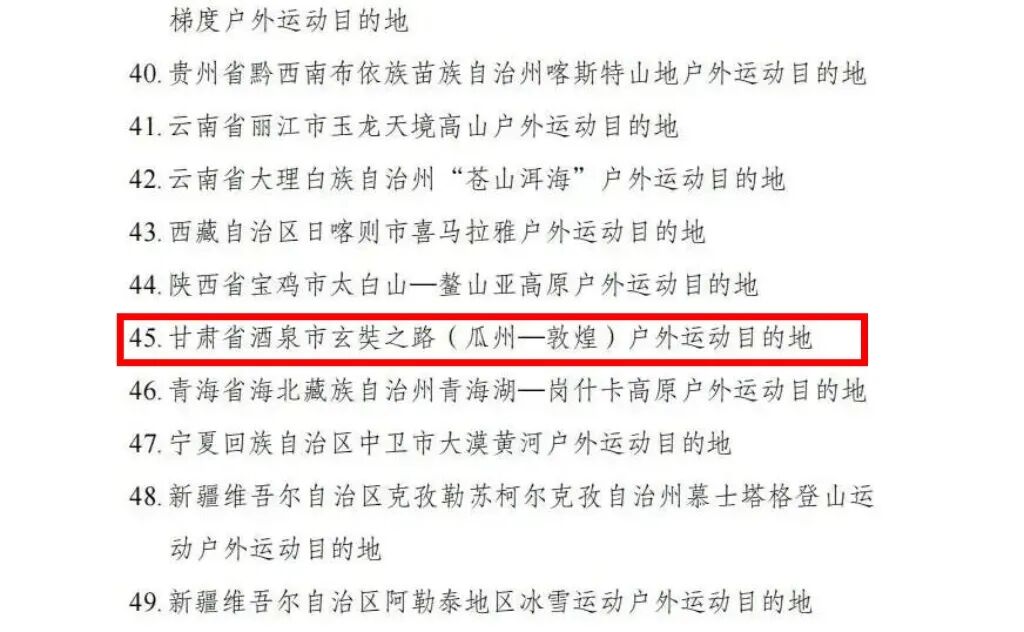 國家首批高質(zhì)量戶外運(yùn)動目的地建設(shè)地區(qū)名單發(fā)布|酒泉1個目的地入列