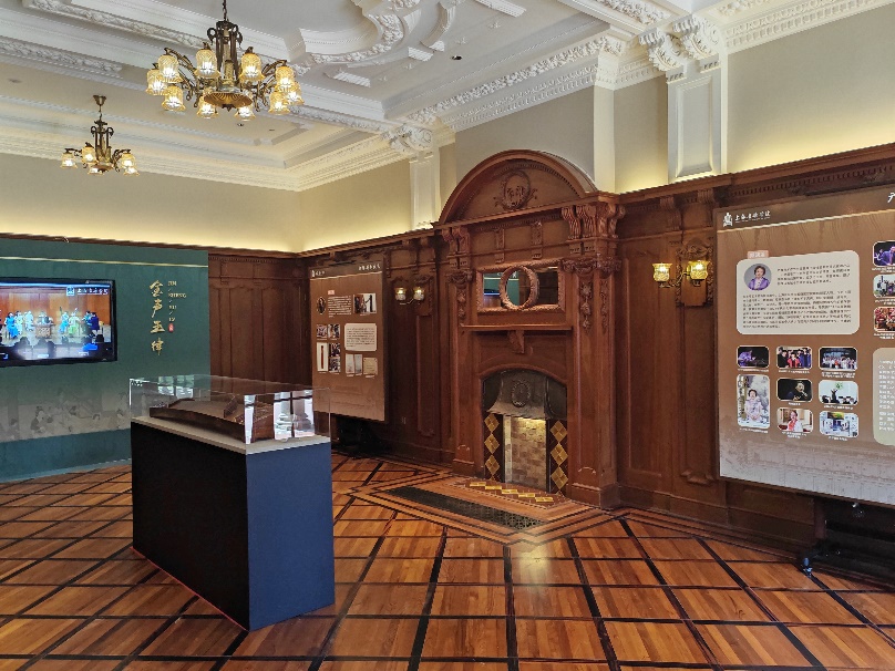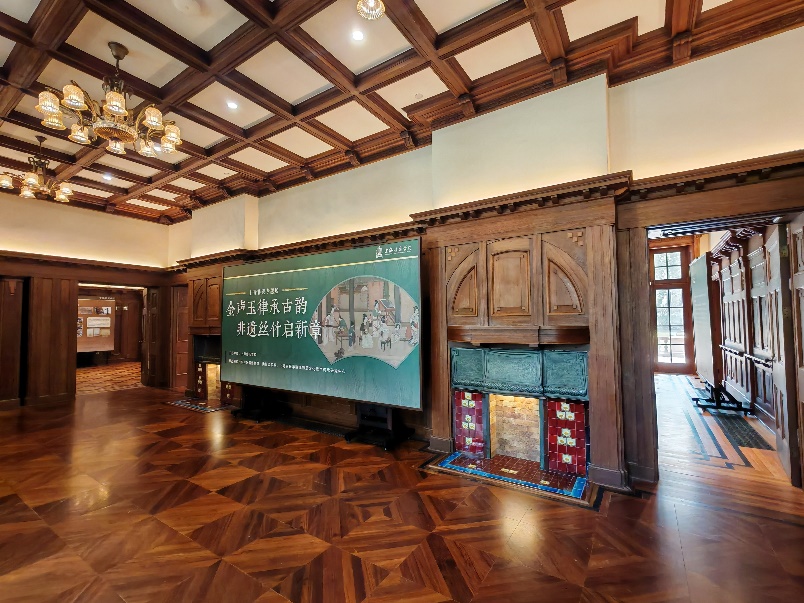“音樂城堡”作為“優秀歷史建筑”,在保留歷史風貌的同時,也注入了新的活力,依然承擔著上海音樂學院教學主體,是上音的音樂大師空間和會客廳,兼具了文化展示與公共開放的功能。當我們在徒步參觀過程中,那里正在舉辦“十年間:上音國家藝術基金項目回顧展”。據介紹:近年來,在“音樂大師空間”舉辦了“抱真:紀念賀綠汀誕辰120周年特展”“以樂為橋,用中國藝術歌曲促進文明交流互鑒——蔡元培美育大講堂”“文脈活化大家談——徐匯文脈活化傳承與國際文化大都市高地建設”等多次學說交流、文化沙龍和藝術活動,古韻醇厚、意境深遠,在老建筑的厚重氛圍與場景之中,聆聽與欣賞“藝術大師”的藝術活動、研究與探索文化藝術的交流活動,更有一番特別的藝術感受。