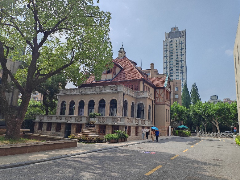 孟秋時節,夏日的余韻依舊,景色更加美麗,馬路兩側,高大的梧桐樹綠蔭繁茂、遮天蔽日,猶如一把天然的“遮陽傘”。校園里彌漫著假日的靜謐氣息,顯得格外寧靜。我們一行來到了上海音樂學院(汾陽路校區),從向市民開放的淮海中路校門進入,特別尋訪了滬上這座百年“音樂城堡”,深度探秘校園內那幾棟老建筑的前世今生。