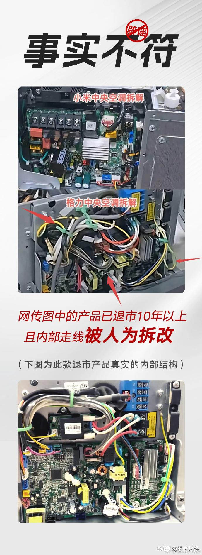 時隔兩個多月后,朱磊回應稱對比圖存在多個問題:圖片展示的格力機型“十年前已退市”;圖片疑似被篡改,格力真實內部結構圖走線規整;即使是格力2021年生產的產品,其在電源接口、通訊方式等方面仍領先小米2025年的新品。