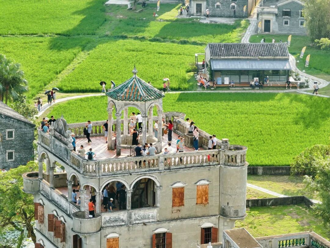 在自力村景區(qū),游客們悠然漫步于古樸的碉樓群中,不時用手機記錄特色建筑與自然風光,感受濃郁的僑鄉(xiāng)文化氛圍。池內睡蓮初綻,田間禾苗青綠,與滄桑碉樓相映成景,構成一幅靜謐和諧的鄉(xiāng)村畫卷。