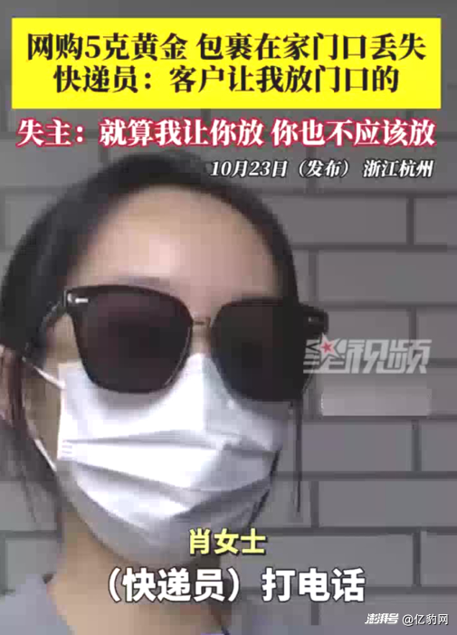 日前,杭州肖女士讓快遞小哥把包裹放家門口,1小時后到家發現,內有5克黃金的包裹不見了,遂要求小哥賠償引發社會關注。