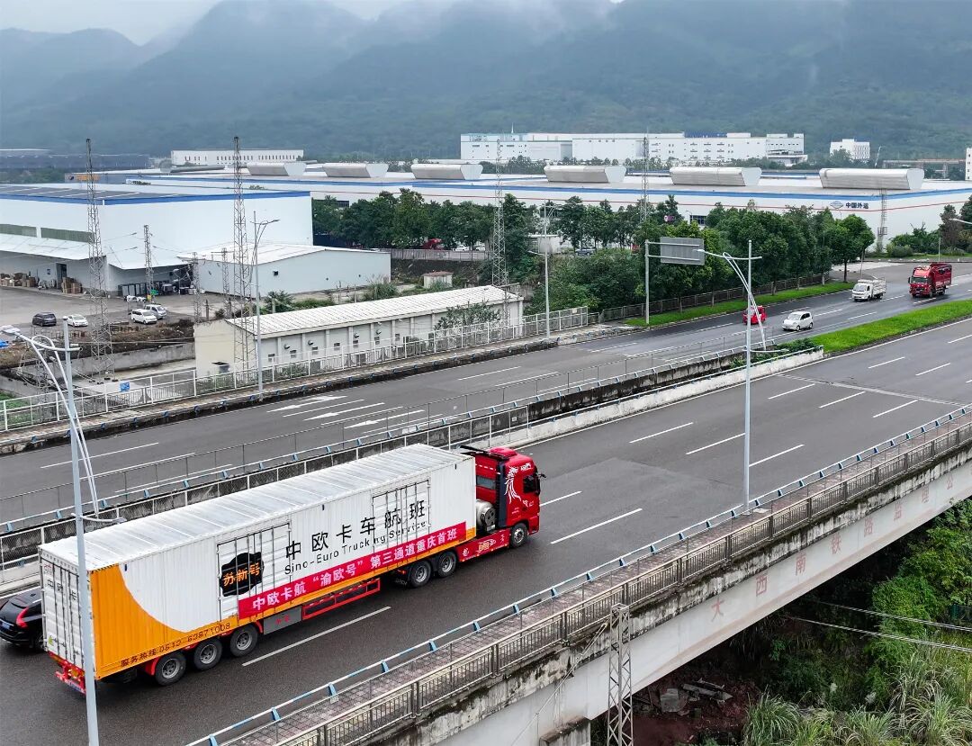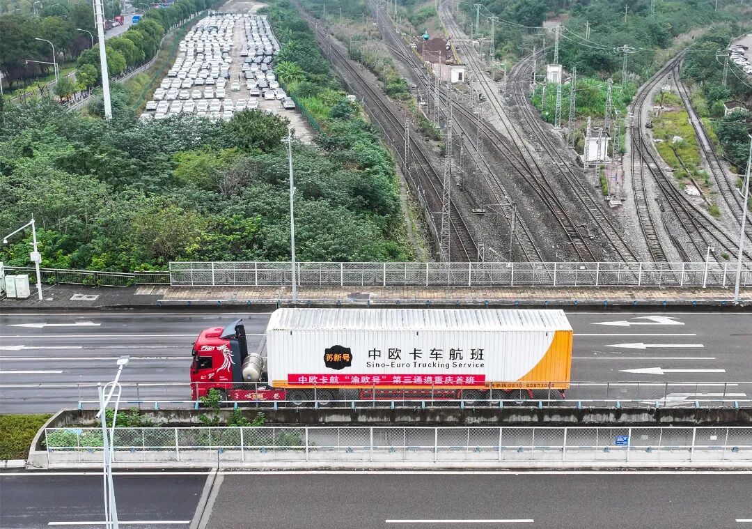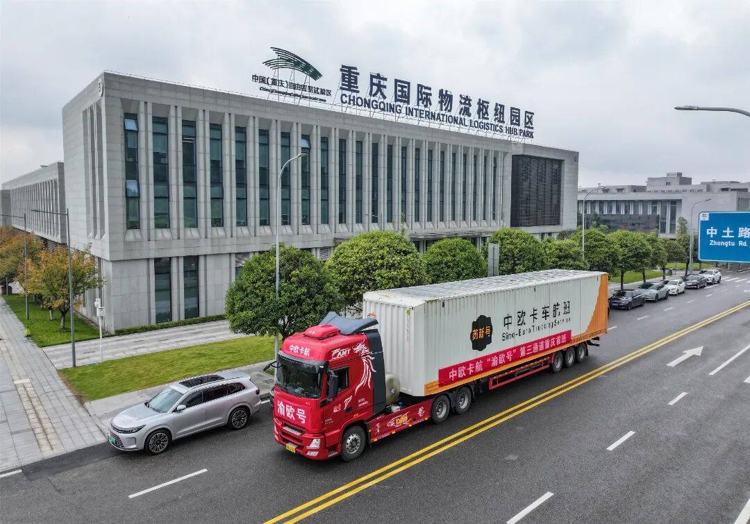 10月27日,伴隨一聲響亮的汽笛,一輛滿載貨物的跨境公路班車“渝歐號”從位于沙坪壩區的重慶國際物流樞紐園區出發駛向歐洲,標志著重慶成功打通了中歐公路運輸北線、南線外的“第三通道”,通過該通道從重慶出發最快只需25天即可抵達歐盟,為中國與歐盟及其沿線國家的貿易交流開辟了一條全新的高效路徑。