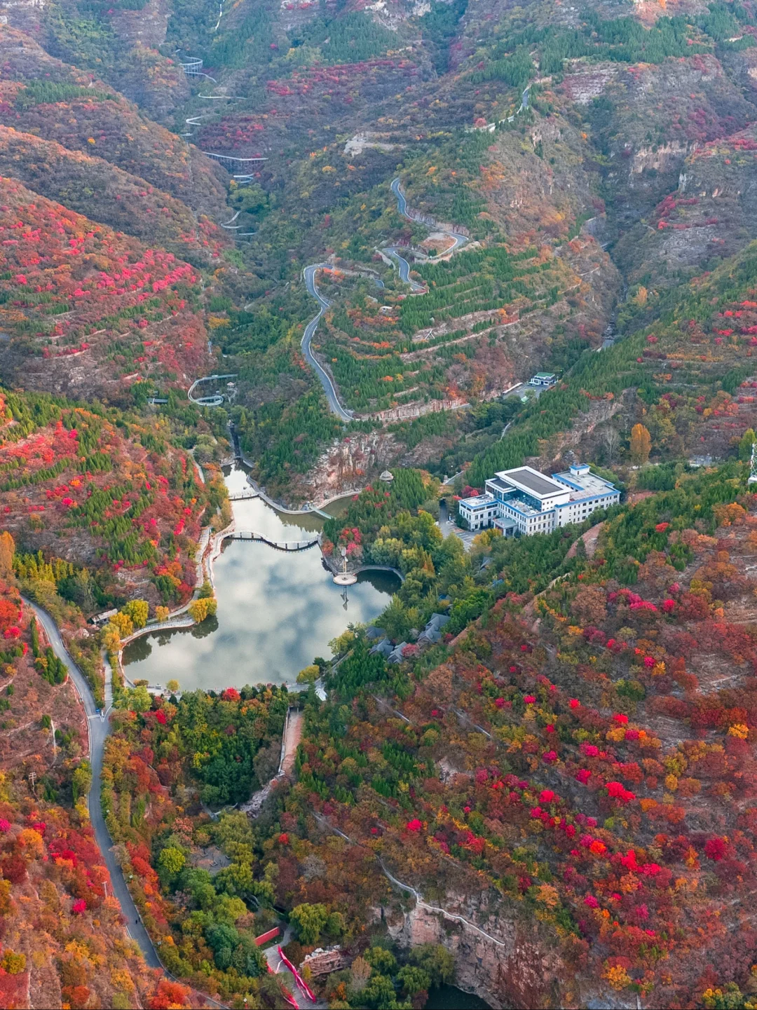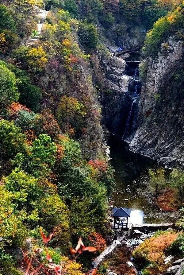 沿石階上行,紅葉從坡底漫向崖頂,在九龍潭的倒影中碎成光斑,于一線天的縫隙里漏下霞光。