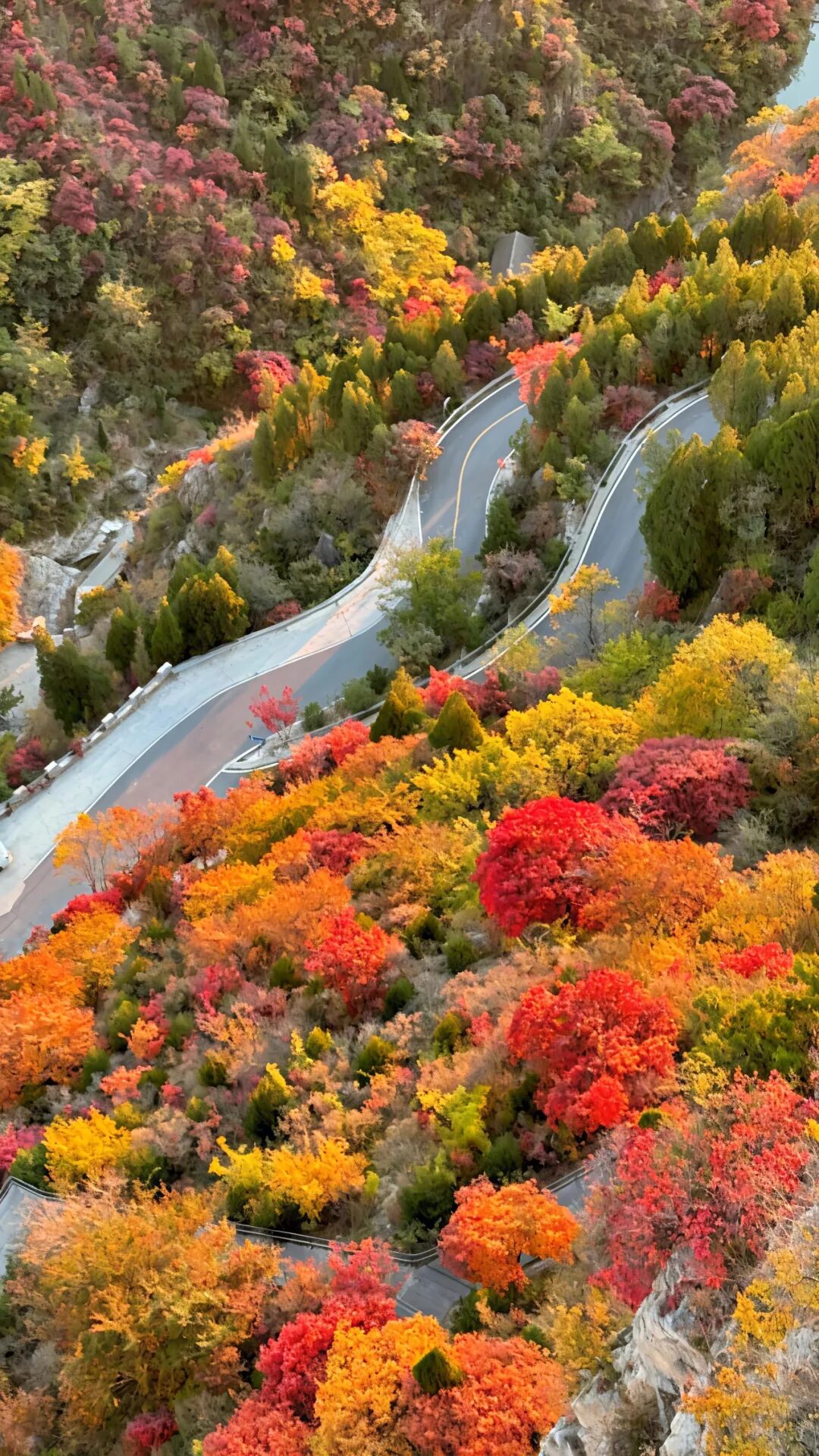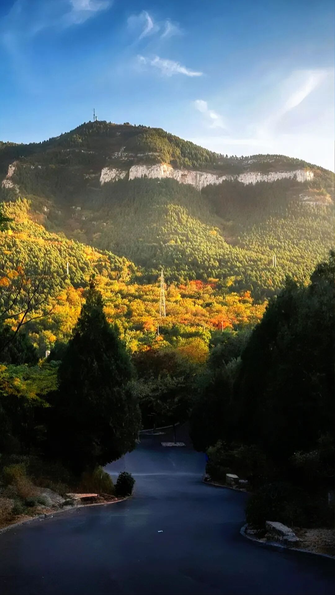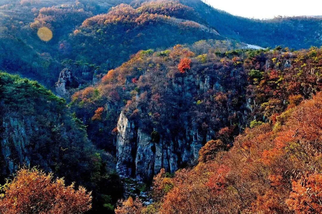 當泰沂山脈的秋風染透潭溪山的崖壁,黃櫨與丹楓在山巔鋪展成橙紅浪潮,恰是重陽節最應景的底色。