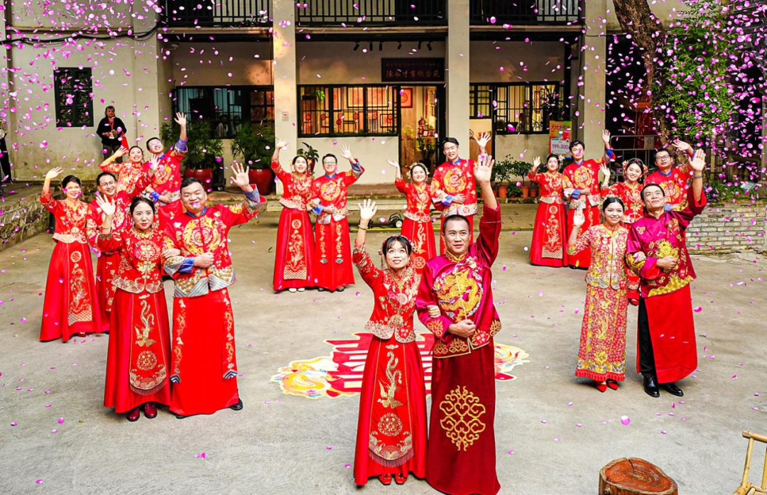 在活化后的嶺南天地歷史文化街區(qū)舉辦“佛山古鎮(zhèn)”民俗婚禮活動