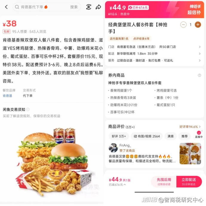 如今,為了更省錢地吃頓肯德基,很多消費者找人代下單,花費不僅比官方便宜,還比平臺套餐更優惠,只是在餐廳、配送等方面,可能受一些限制。