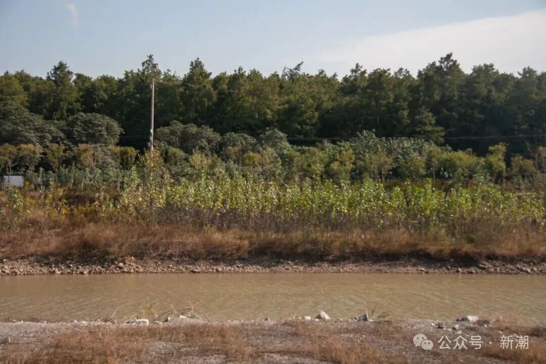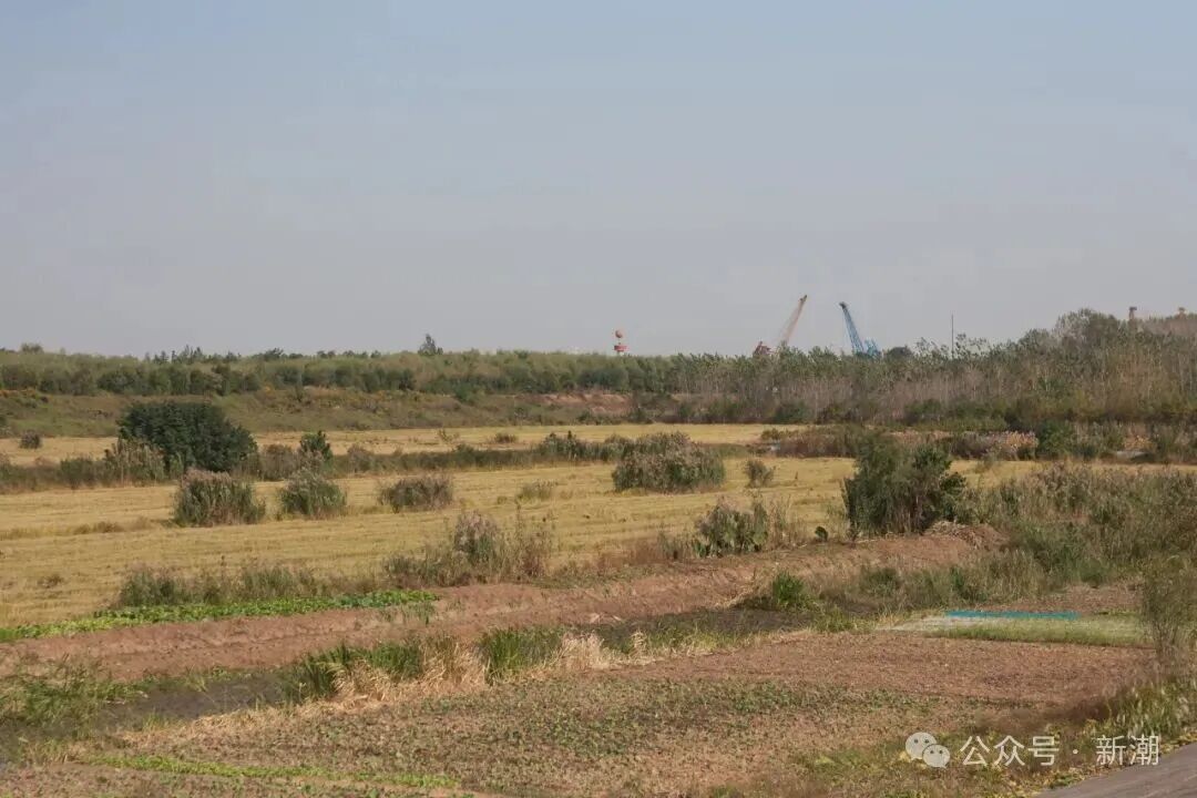 站在馬渡村的堤岸上,可以看見長江邊的燈塔與起重機。