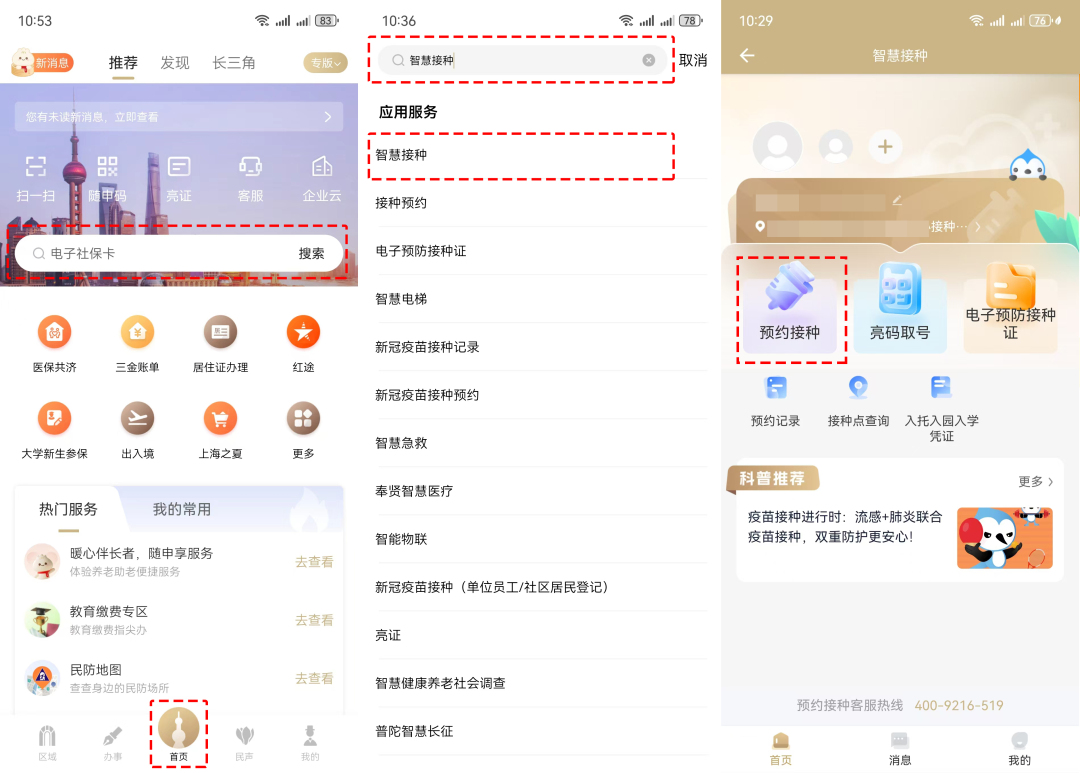 市民朋友可以通過“隨申辦市民云”APP查詢接種門診信息或預約接種。操作步驟如下↓
