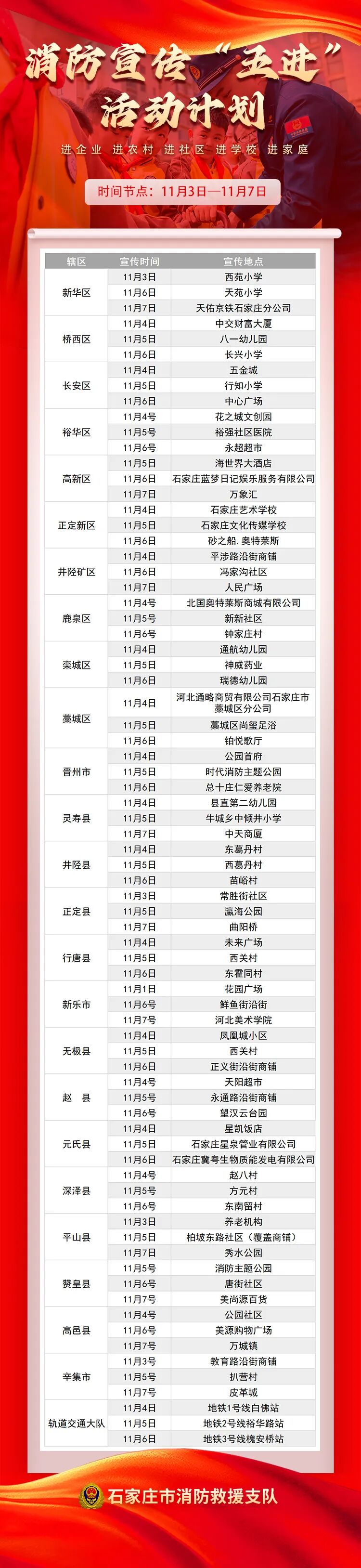 石家莊消防宣傳“五進”活動周計劃(11月3日—11月7日)