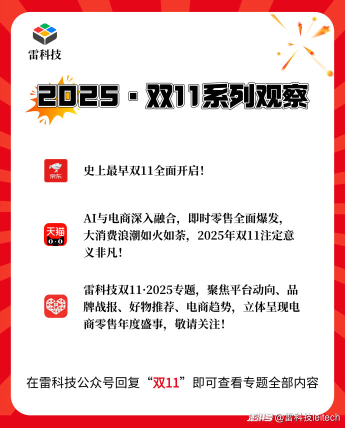 雷科技雙11·2025專題,聚焦平臺(tái)動(dòng)向、品牌戰(zhàn)報(bào)、好物推薦、電商趨勢(shì),立體呈現(xiàn)電商零售年度盛事,敬請(qǐng)關(guān)注!