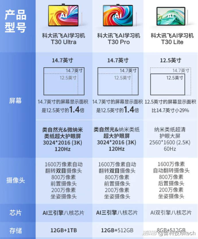 如圖所示,T30 Lite和旗艦款T30 Pro、T30 Ultra之間,基本只有物理硬件上存在的一丁點(diǎn)差距。