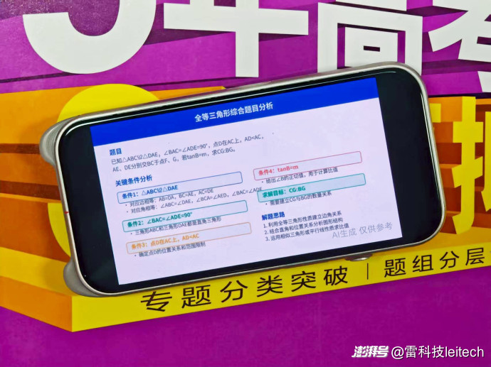 小雷在產(chǎn)品首發(fā)時(shí)便做過評測,我的感受是,這支筆在解題時(shí),真的不像個(gè)機(jī)器,更像個(gè)有耐心的老師。比如一道初中幾何題,掃進(jìn)去之后,它不會直接把答案拍你臉上,而是先給出循序漸進(jìn)的步驟解析。