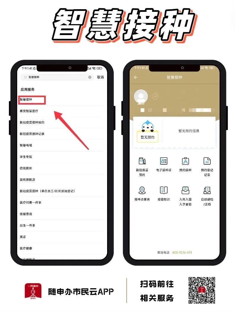 第一步:“隨申辦市民云”APP,搜索進入【智慧接種】服務,或掃描下方二維碼