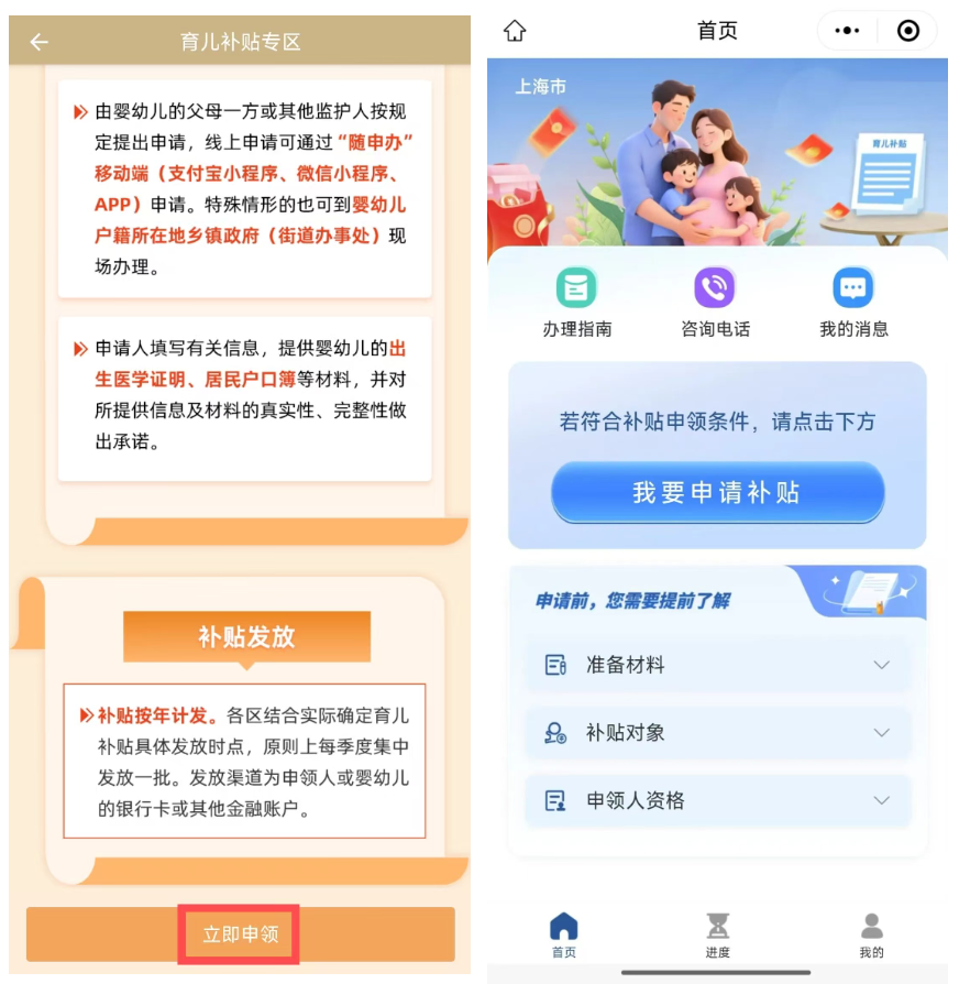 “隨申辦”育兒補(bǔ)貼申領(lǐng)通道