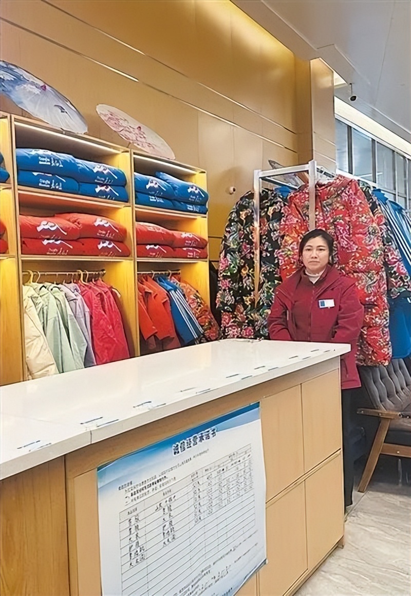 在長白山北景區游客集散中心,各種式樣的保暖大衣可供游客租用。