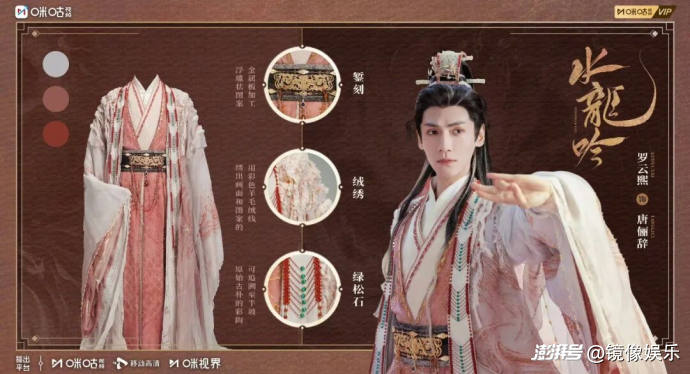 貫穿《水龍吟》全劇服飾美學(xué)基調(diào)的,則是“中國(guó)紅”的運(yùn)用和巖彩畫藝術(shù),它們將各個(gè)朝代、各個(gè)地域的服飾文化完美串聯(lián)在了一起,最終構(gòu)成了渾然一體的服裝美學(xué)體系。天馬行空的玄俠定位,可以讓《水龍吟》的場(chǎng)景設(shè)計(jì)和服化道設(shè)計(jì)跨越時(shí)空大刀闊斧創(chuàng)新,而在華夏文化巡禮中,這些創(chuàng)新又讓劇集的玄俠概念與文化厚度落到了實(shí)地。