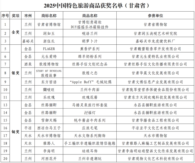 2025中國特色旅游商品大賽甘肅省斬獲3金7銀8銅佳績