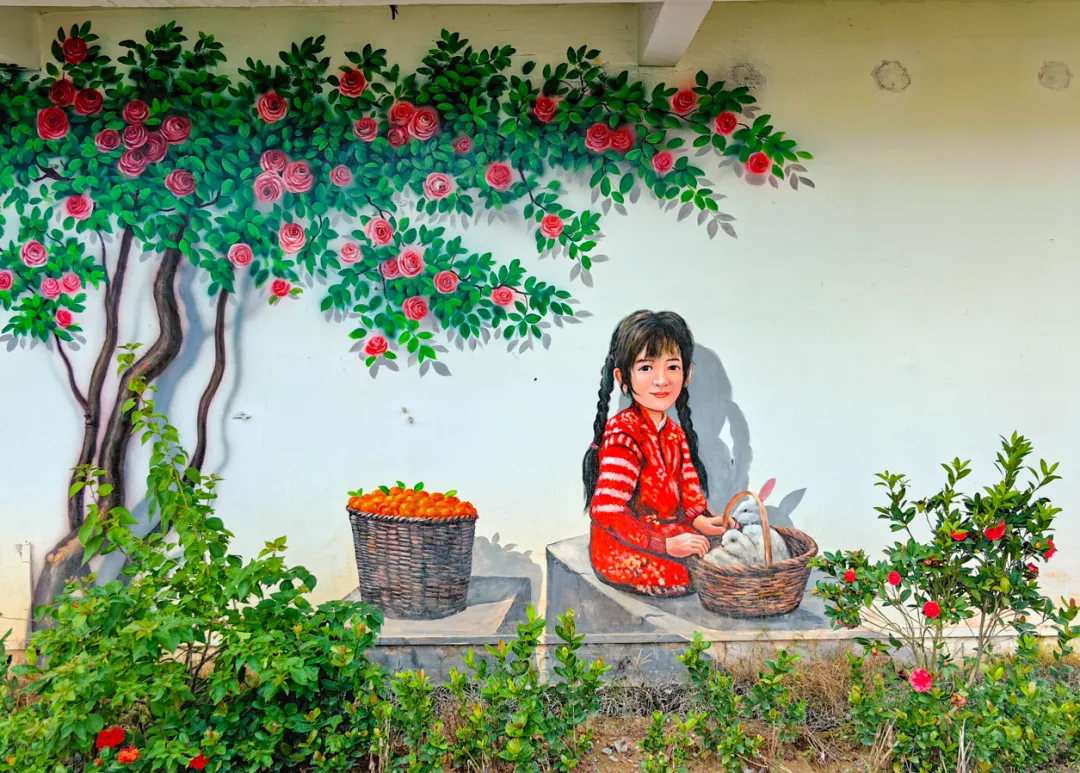 與房前屋后村民親手栽種的三角梅虛實相生,