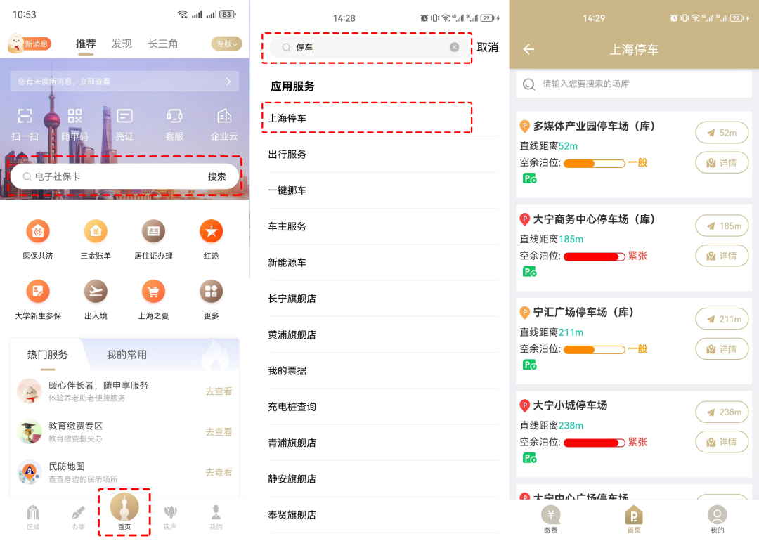 停車查詢:您可通過“隨申辦市民云”APP的“上海停車”服務,提前查詢、預約附近的停車位,還可詳細查看停車費用等信息。