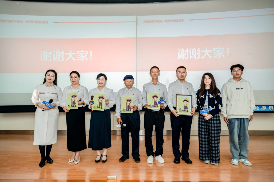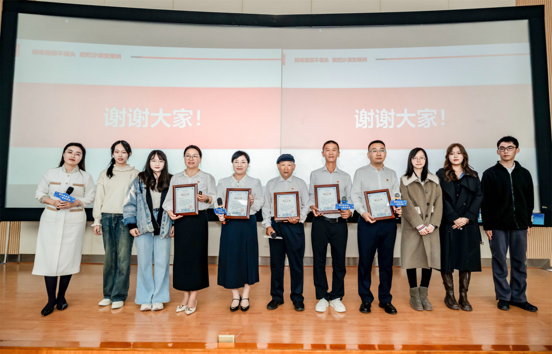 致謝環節中,蘭州大學學生黨員宣講團、教育部全國黨建工作樣板支部蘭州大學馬克思主義學院思想政治教育研究所研究生黨支部、全國高校“雙帶頭人”教工黨支部蘭州大學資源環境學院水文系教工黨支部書記工作室的師生代表,向教學團隊頒發了嘉賓紀念證書,并贈送了由威爾士學院優秀學生精心設計的治沙IP形象作品。李曉莉副教授鼓勵同學們,要從以八步沙六老漢治沙精神為代表的新時代社會主義建設的精神史詩中汲取力量,向上生長、向下扎根、向內聚力,以“功成不必在我”的歷史耐力和“功成必定有我”的歷史擔當,展現新時代接班人的使命,與歷史同向、與祖國同行、與人民同在,為建設社會主義的現代化強國展現蘭大人的精神和力量。