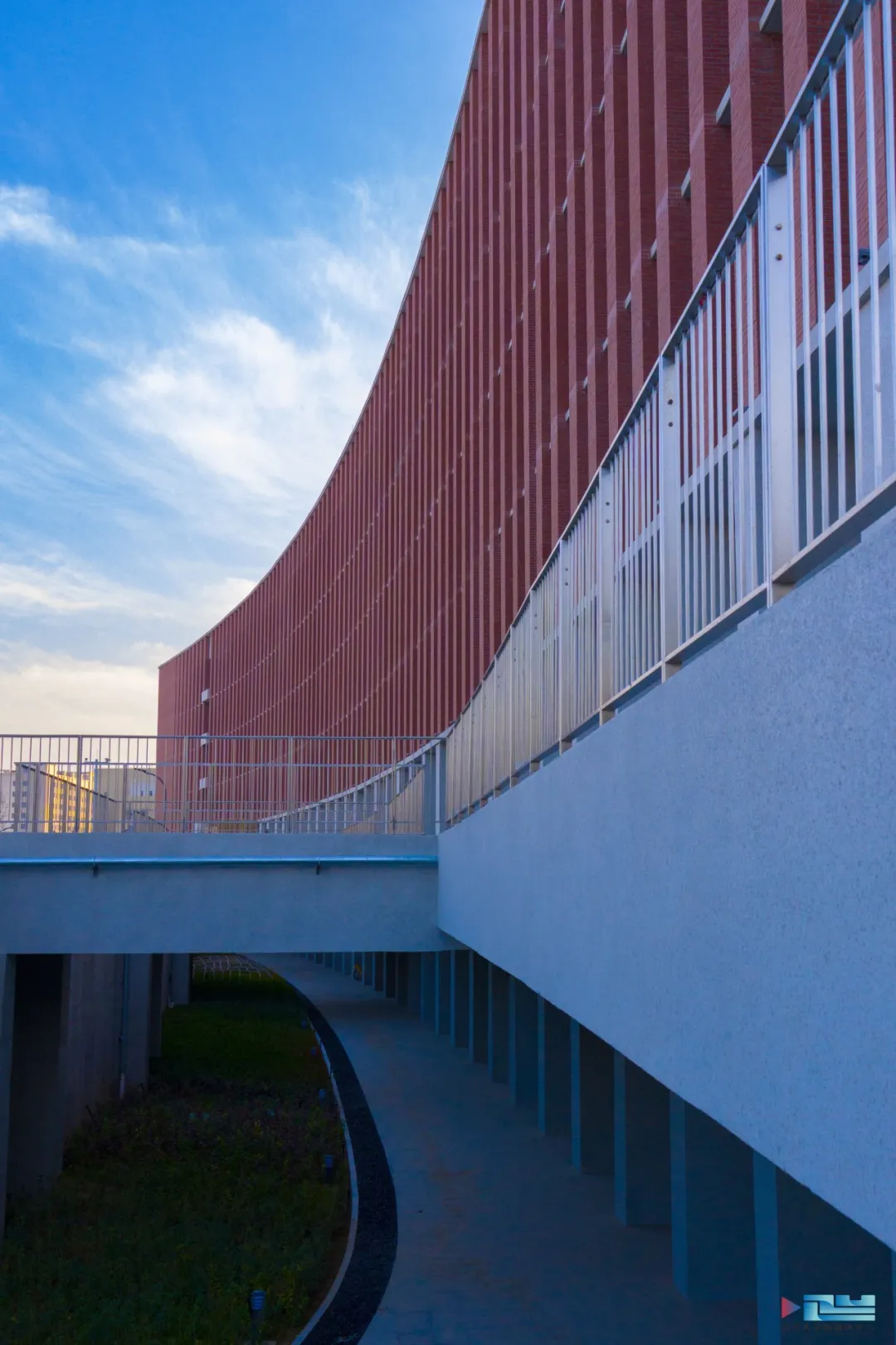 東側(cè)立面采用豎向線條+首層柱廊造型