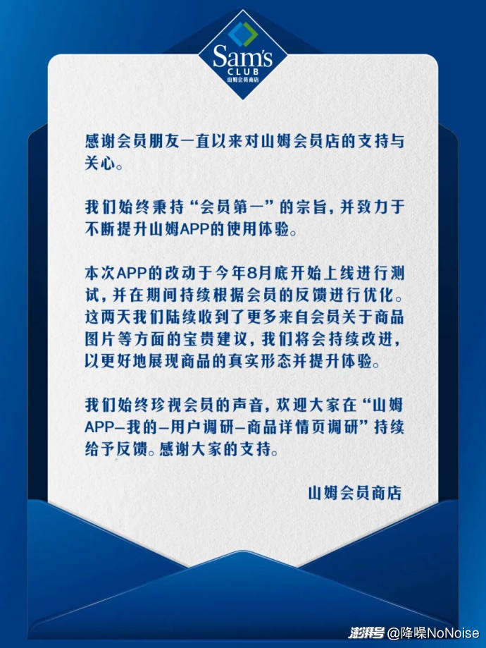 這或許能解釋,11月3日晚,山姆為何要連夜澄清一次App界面改版引發(fā)的誤解——