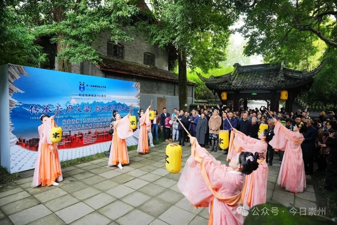 揭幕式以迎賓歌舞開場。隨后,紀念陸游誕辰900周年詩朗誦節目《豈信人間有蜀州》在香如故堂前上演。