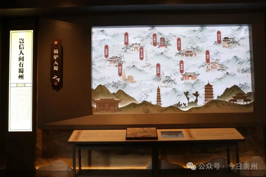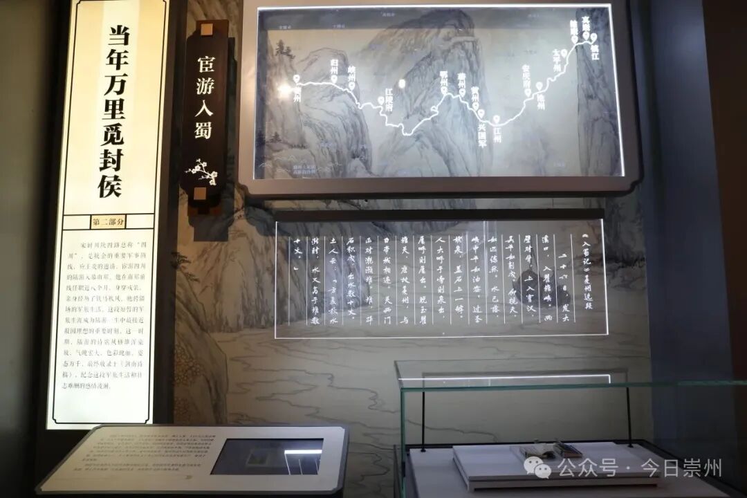 放翁堂則聚焦“豈信人間有蜀州”主題,陸游雕塑首先映入眼簾,通過“騎驢入蜀”“蜀中之蜀”“巴蜀情思”三個單元深挖其與蜀州的淵源?!膀T驢入蜀”全面介紹蜀州的歷史定位、地理環境與物產資源;“蜀中之蜀”講述陸游任蜀州通判時在罨畫池的生活場景,展出筆墨紙硯等實物,并呈現其創作的167首紀懷蜀州詩詞及蜀州八景相關記述;“巴蜀情思”則回溯陸游離蜀后對巴山蜀水的深切懷念,以及《劍南詩稿》的創作背景。