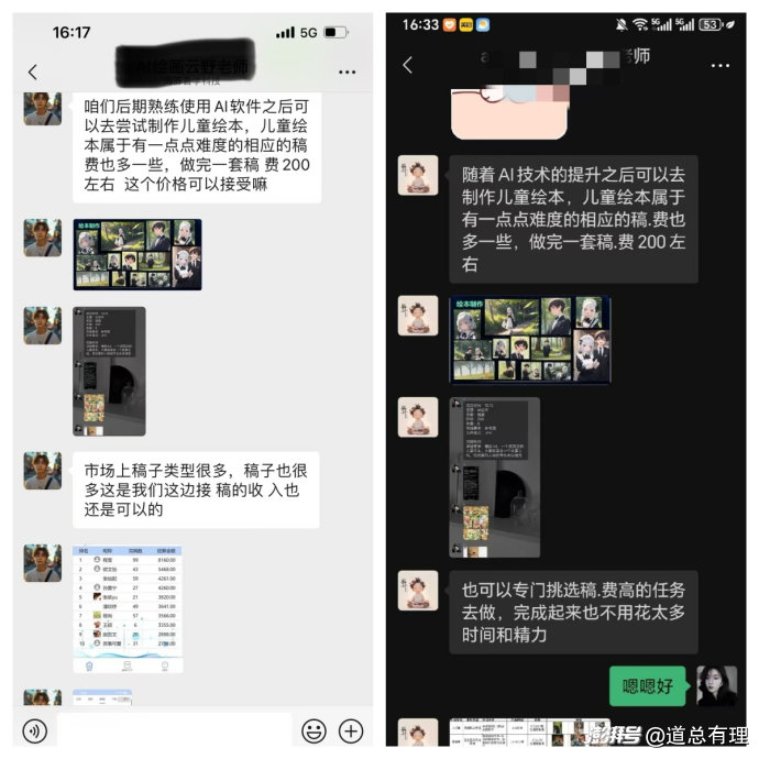 有不少網友在社交平臺分享了自己的經歷,他們從短視頻平臺刷到了相關內容,在聯系媒體賬號后,很快就有人聯系,稱正在招募想要以 AI 繪本為副業的人。對方先是介紹了接什么樣的單子、對應多少錢,而后發來鏈接,開始聽公開直播課,學習技術。