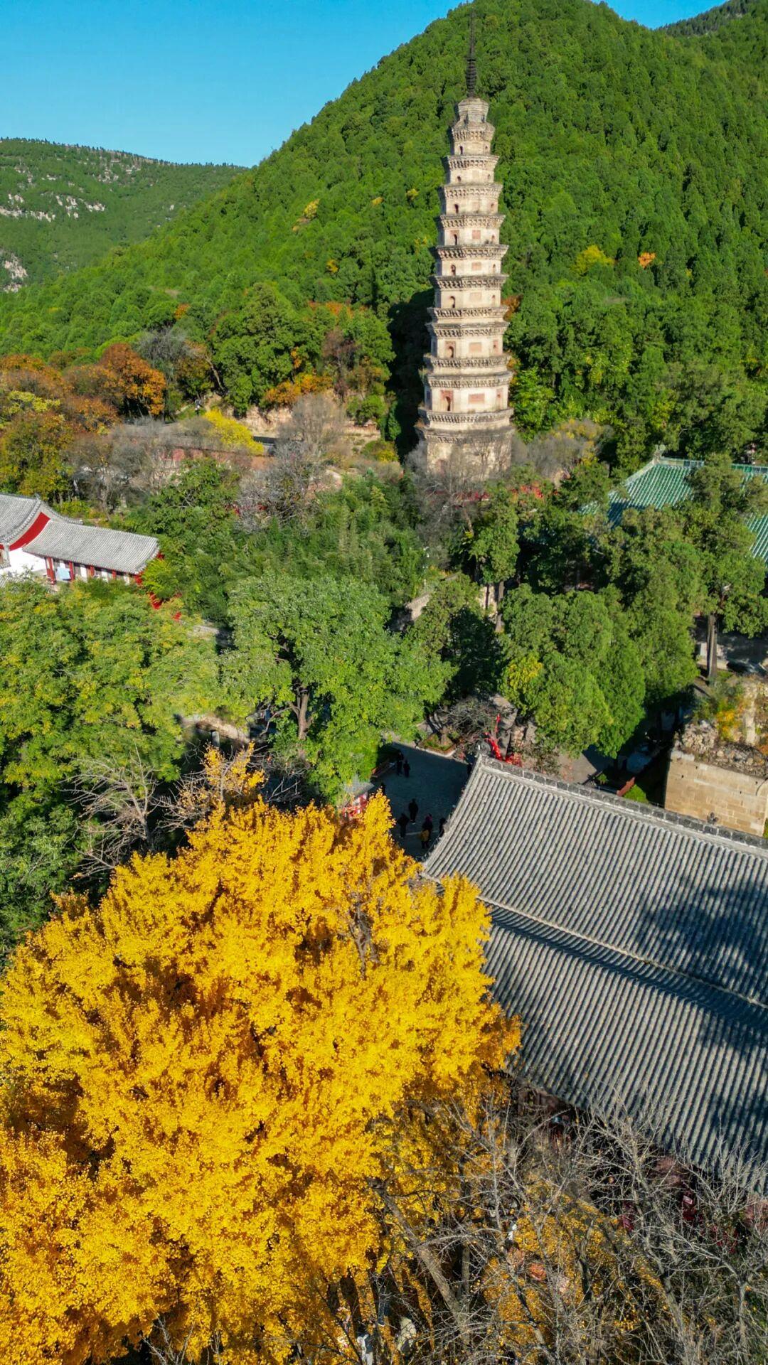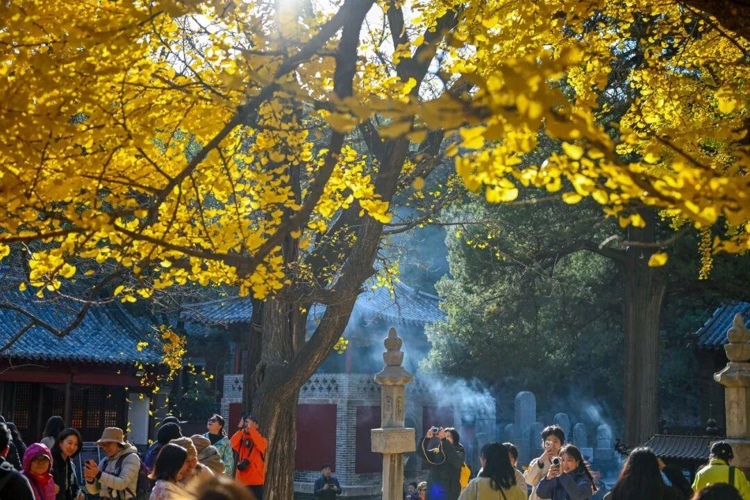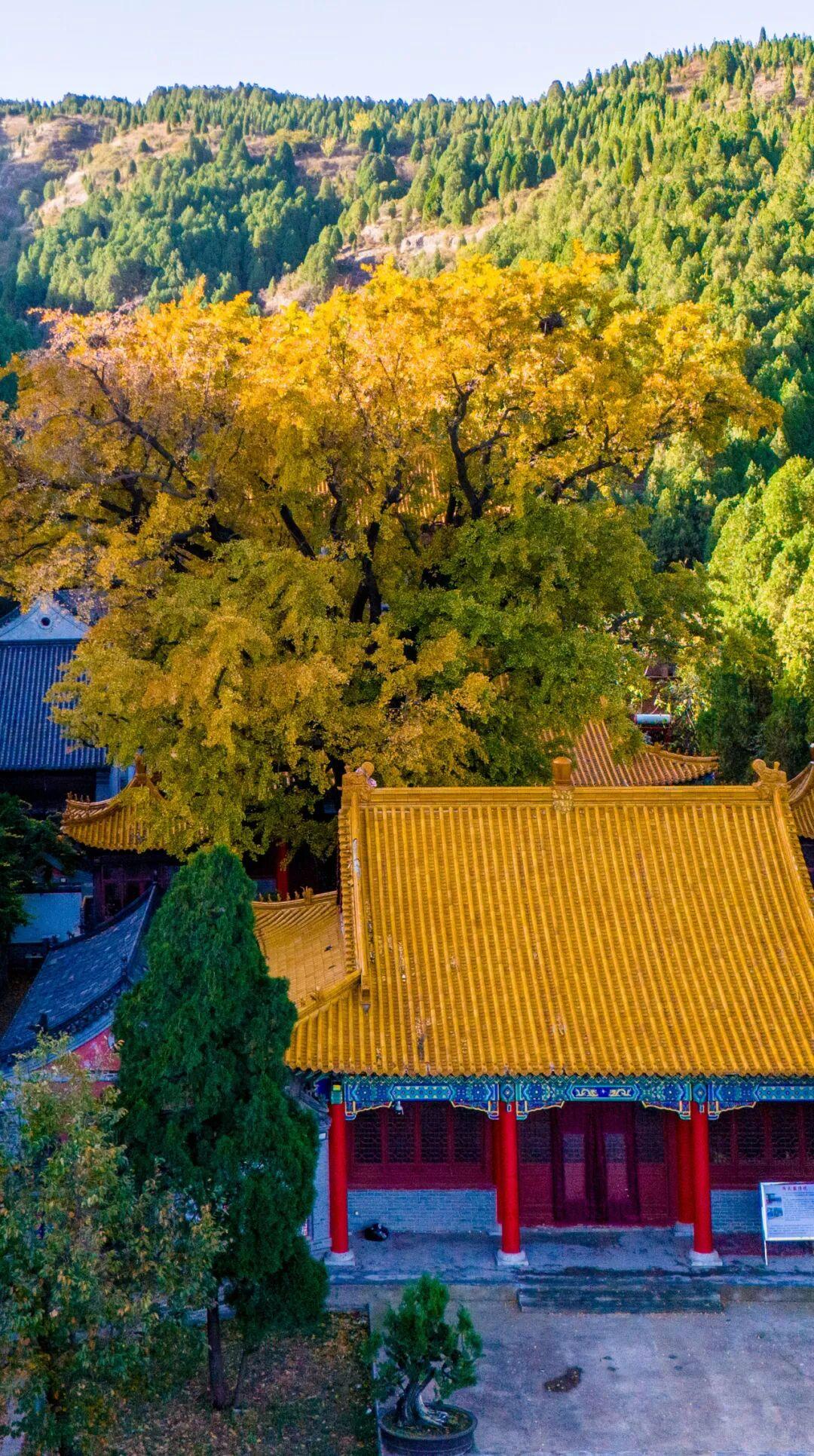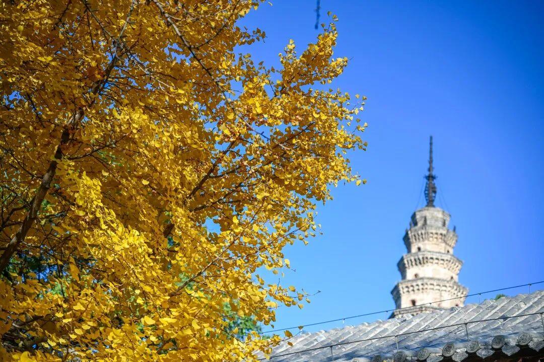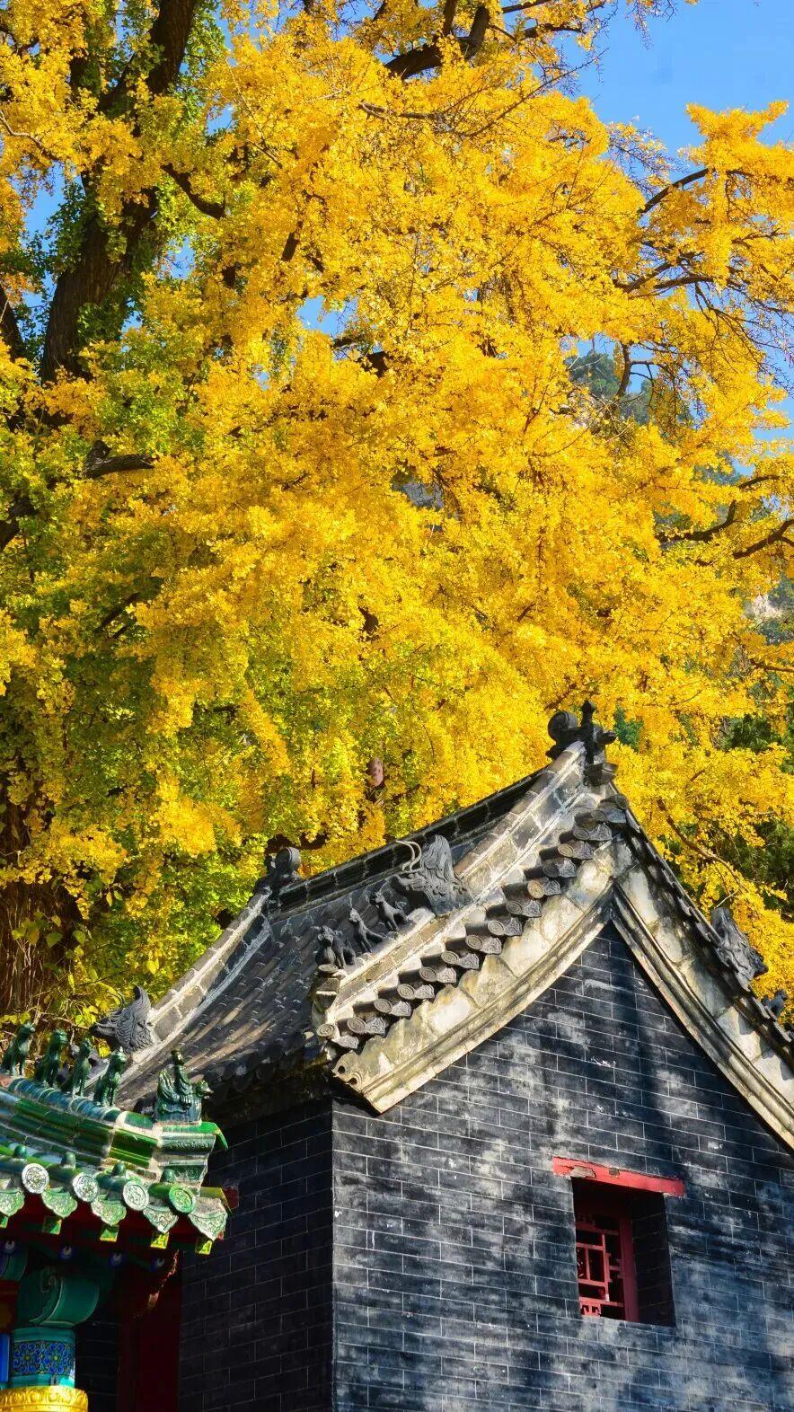古樸的寺院在金黃銀杏的點綴下,愈發醇厚靜謐,二者相互交融,勾勒出一幅如詩如畫的秋日盛景。·
