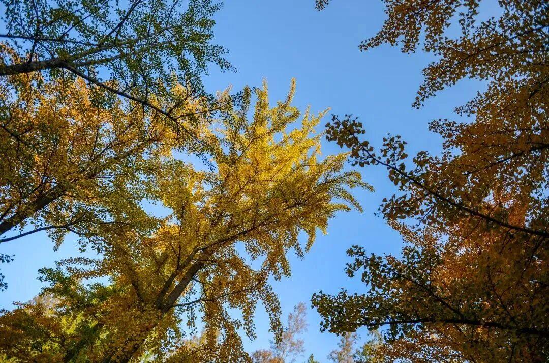 濟南森林公園已然迎來最佳觀賞期!滿樹銀杏黃綠交織,像是給天空織了層絢麗的錦緞。