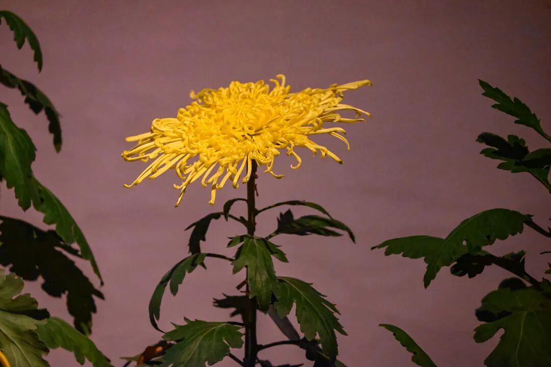 燈光為白日明艷的菊花