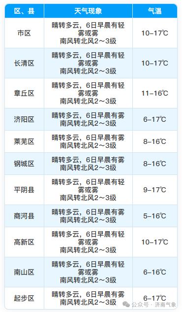 濟南天氣明天多云主導,7日有降水