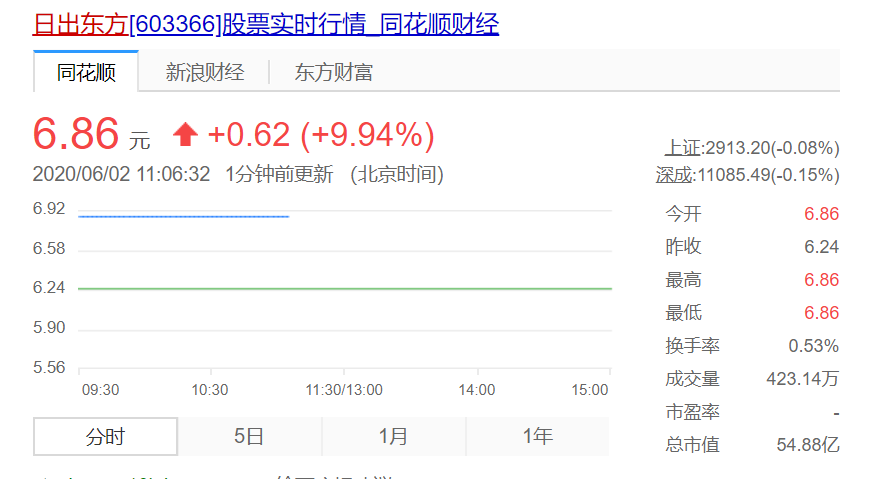 就連間接持有快手股權(quán)比例為0.00276%的日出東方也出現(xiàn)一字漲停,要知道今年年一月以來,日出東方因?yàn)闃I(yè)績(jī)不佳,理財(cái)頻頻踩雷,股價(jià)一度下挫近30%。今日,日出東方再度開盤漲停。
