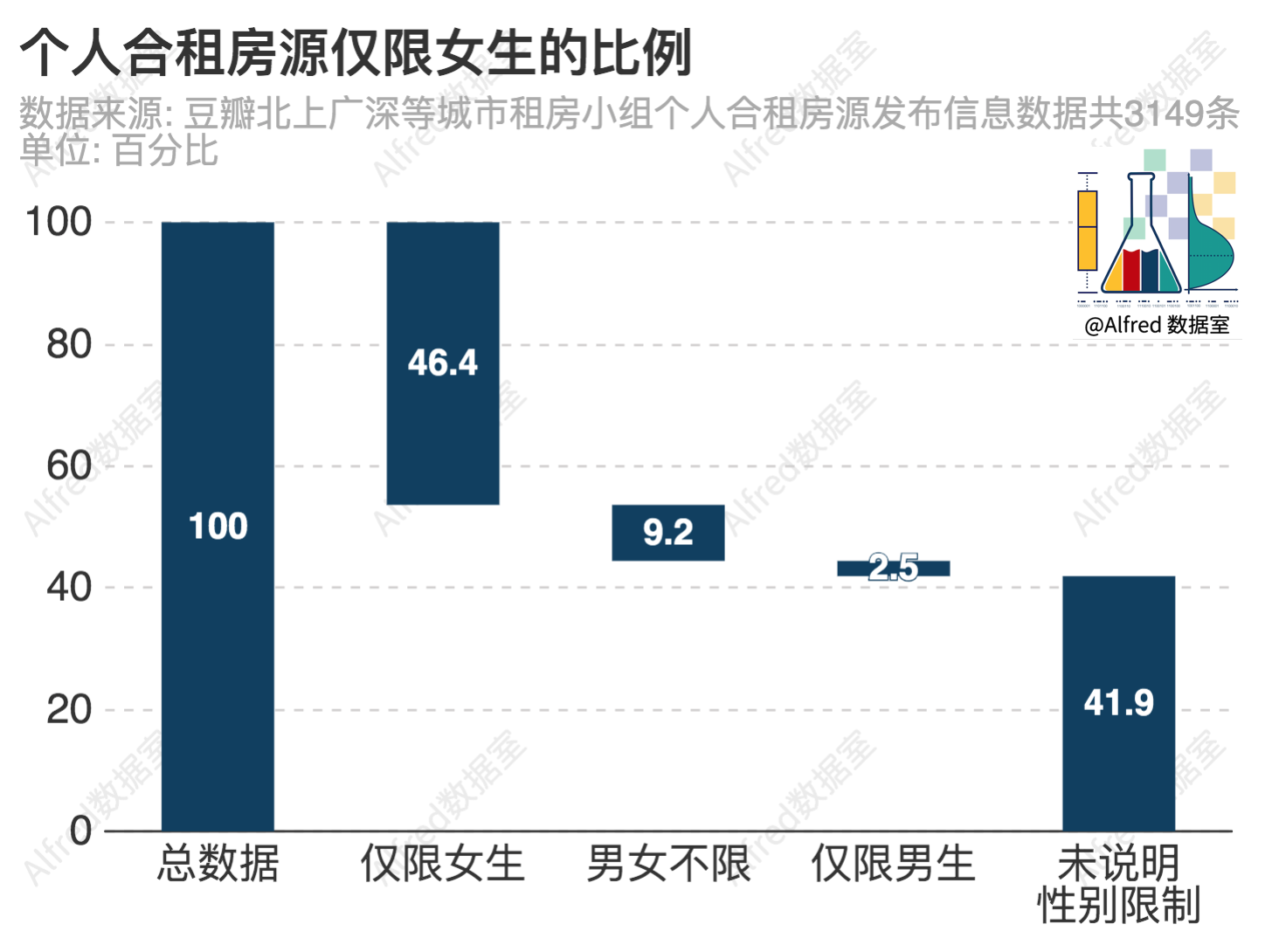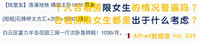 當然很多人也認為,限女生主要是出于安全、個人隱私和衛生方面的考慮。我們獲取的房源發布信息數據也印證了這一點。